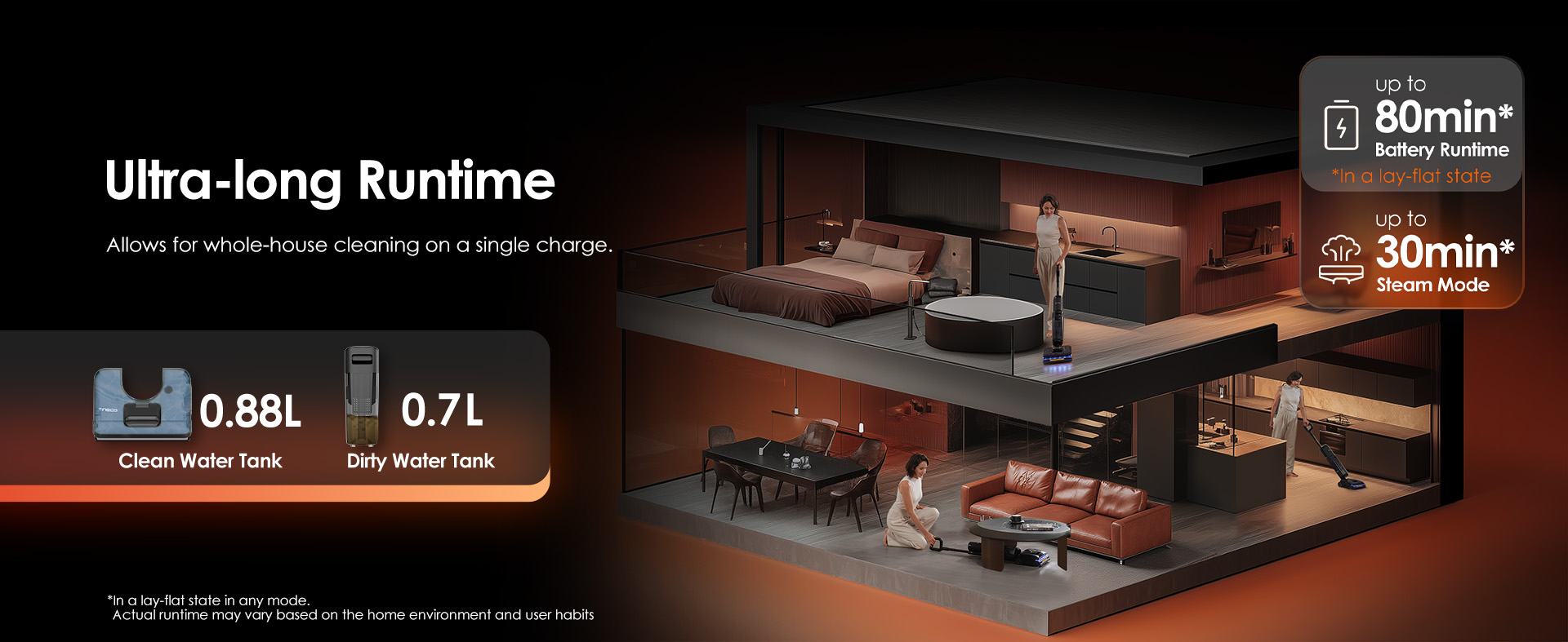Up to 80 mins/30 mins(Steam)